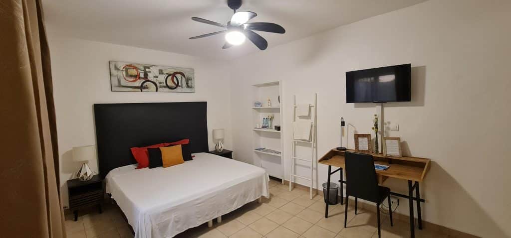Equipped with air conditioning, a ceiling fan, and a mini fridge, the Stylish Room ensures optimal comfort.
