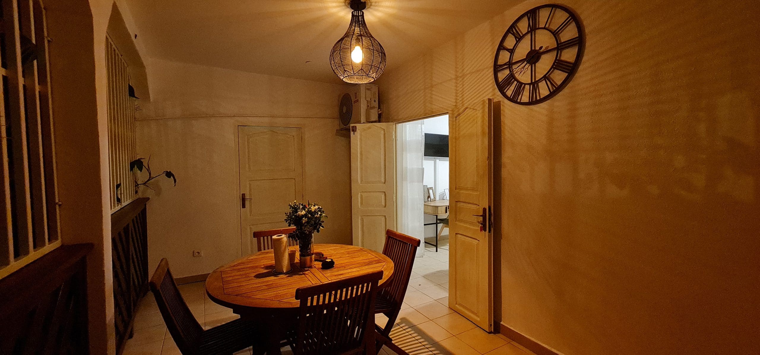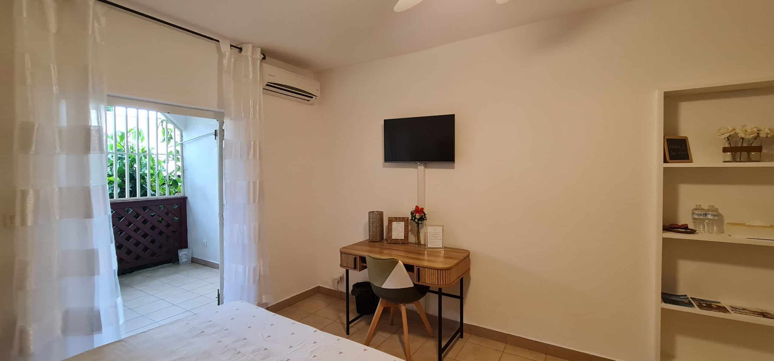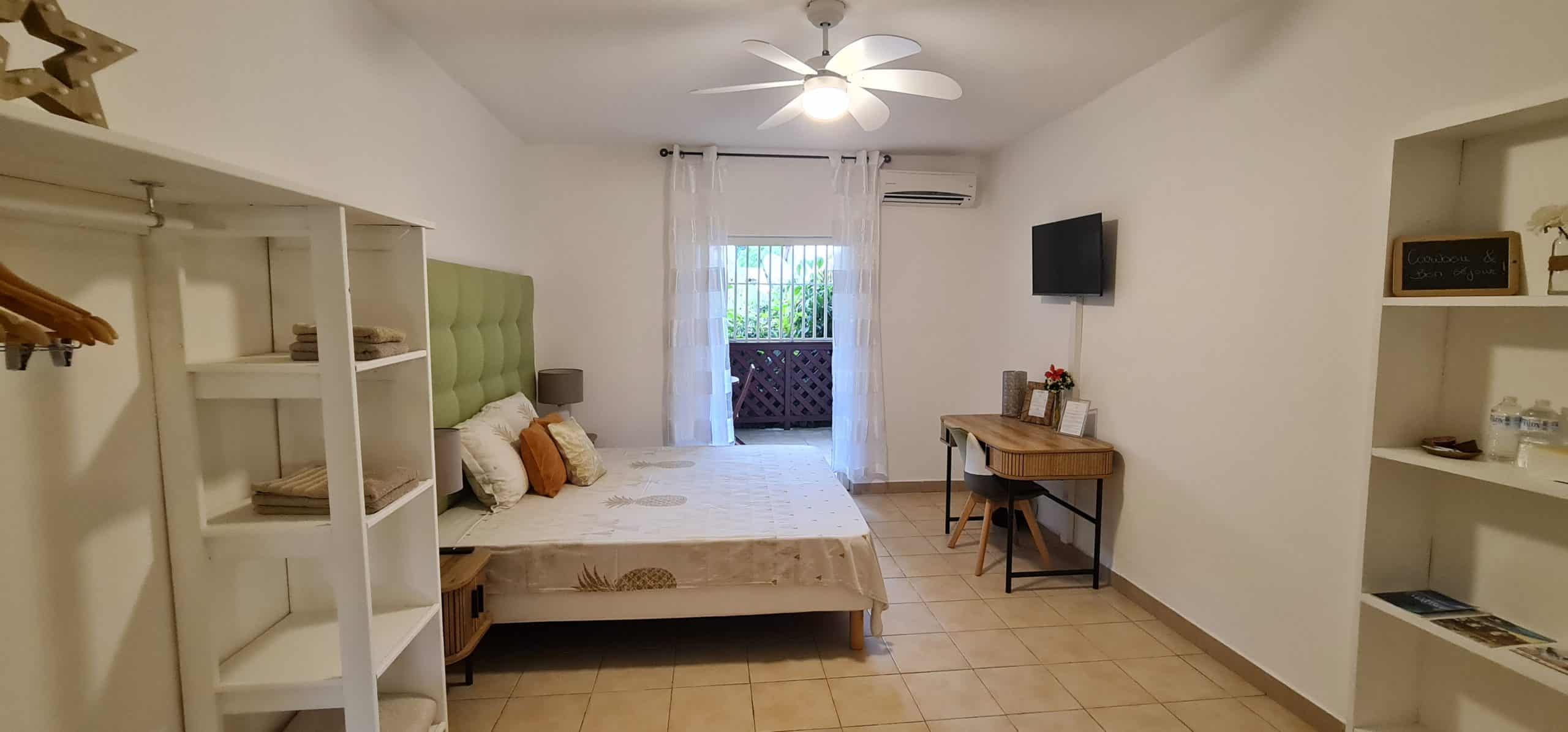 Bienvenue dans la Scandy Room, où le charme scandinave rencontre le confort moderne au milieu de l’Océan Indien. Cette chambre élégante, décorée dans des tons apaisants, vous offre un espace serein pour vous détendre après une journée d’exploration. Profitez du luxe d’un lit King-size ou de deux lits simples, selon vos préférences. La chambre est équipée d’une TV connectée, d’une climatisation, d’un ventilateur et d’un canapé-lit pour votre confort optimal. Vous trouverez également un bureau design pratique pour vos moments de travail, un petit réfrigérateur pour vos rafraîchissements, et lotion et raquette anti-moustique pour des nuits paisibles.
